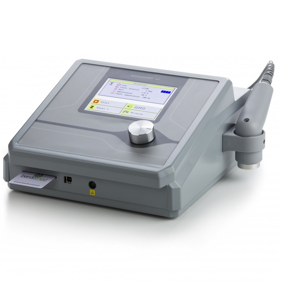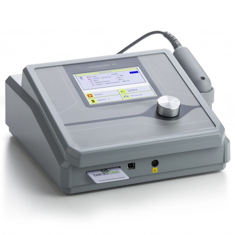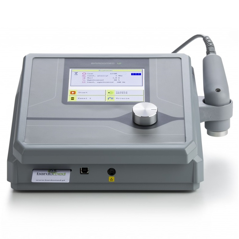 Aparat do ultradźwięków BARDOMED U1 z multi-częstotliwościowymi i w pełni wodoszczelnymi głowicami (1/3 MHz) i aktywną powierzchnią 1,3,5 i 8 cm2. Ultradźwięki to drgania akustyczne o wysokiej częstotliwości niesłyszalne przez ludzi. Stosowanie ultradźwięków w celach terapeutycznych obejmuje wysyłanie do ludzkich tkanek (komórek i przestrzeni międzykomórkowej) sygnałów o wysokiej częstotliwości. Ultradźwięki mogą być również stosowane pod wodą, głowica jest wówczas zanurzona wraz z obszarem poddawanym zabiegowi. Tkanki poddawane działaniu ultradźwięków zaczynają drgać, następuje zużycie energii i wytwarzane jest ciepło. Są to przykłady biologicznego działania ultradźwięków, które można podzielić na działanie mechaniczne, diatermiczne i chemiczne.
