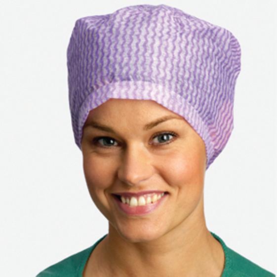 Włókninowy czepek chirurgiczny ściągnięty z tyłu gumką. Pakowany w kartonik w formie podajnika. Kolor niebieski(621005)/zielony(621000)/fioletowy(621001). Ilość sztuk w opakowaniu "podajnik"/Ilość sztuk w opakowaniu transportowym: 100/500.