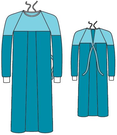 Sterylny fartuch urologiczny wykonany w części przedniej i w rękawach z całkowicie nieprzemakalnej folii PE, w części tylnej z hydrofobowej włókniny bawełnopodobnej, obszerny i szeroki umożliwiający zabezpieczenie kończyn dolnych operatora przed przemoczeniem, także w pozycji siedzącej. Fartuch posiada kontafałdy w części przedniej. Rozmiar L(670301)/XL(670302). Ilość sztuk opakowanie "podajnik"/Ilość sztuk opakowanie transportowe: 16/32.