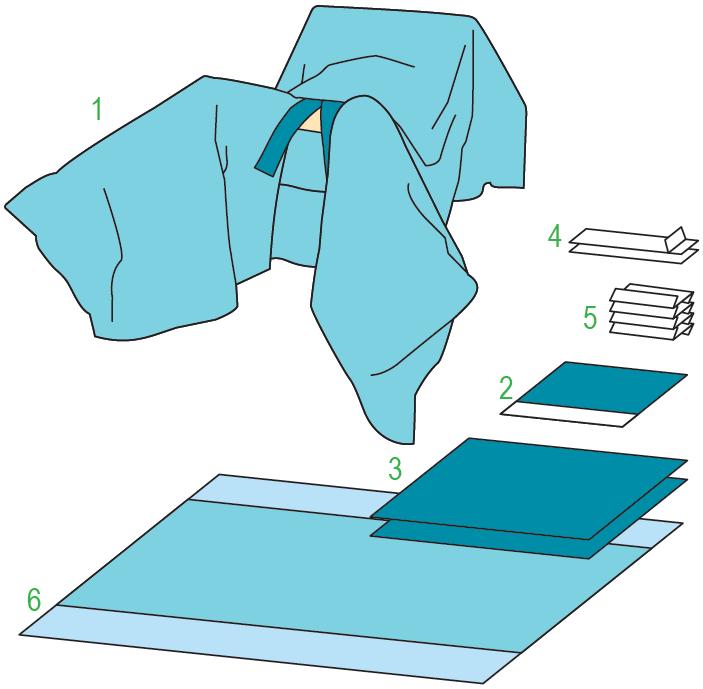 GYNAECOLOGY SET. Elementy zestawu: serweta chirurgiczna do zabiegów ginekologicznych o wymiarach 150x235 cm, zintegrowana z ekranem anestezjologicznym i nogawicami, posiada otwór w okolicach krocza, którego rozmiar i kształt można regulować za pomocą zintegrowanych taśm samoprzylepnych. Otwór otacza warstwa chłonna - 150x235 cm - 1 sztuka; serweta chirurgiczna samoprzylepna 50x50 cm - 1 sztuka; serwety chirurgiczne 75x90 cm - 2 sztuki; tasmy samoprzylepne 9x49 - 2 sztuki; ręczniki chłonne 18x25 cm - 4 sztuki; serweta na stolik - (owinięcie zestawu) 150x190 cm - 1 sztuka. Zestaw sterylny. Ilość sztuk w opakowaniu "podajnik"/Ilość sztuk w opakowaniu transportowym: 8/16.