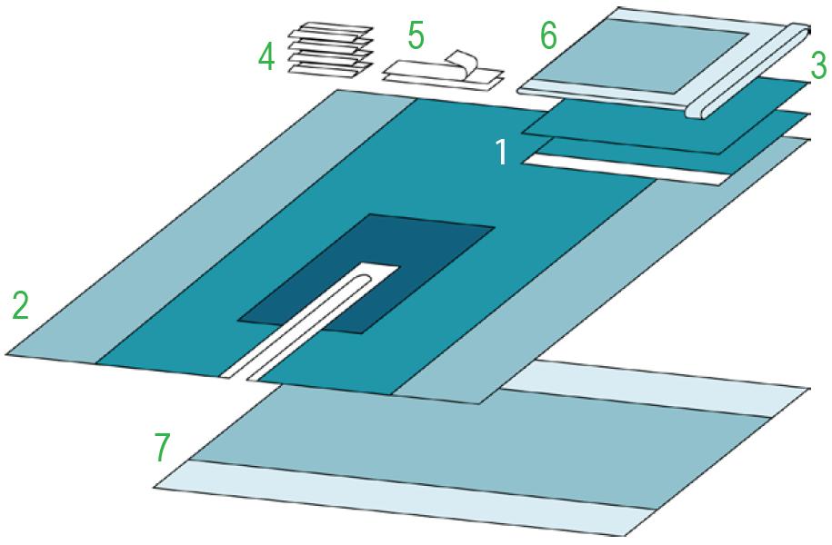 ENT SET. Elementy zestawu: serweta chirurgiczna górna z taśmą samoprzylepną 90x75 cm - 1 sztuka; serweta chirurgiczna dolna o wymierach 150x260 cm z wycięciem U o wymiarach 7x65 cm wzmocniona (dodatkowa warstwa chłonna) w strefie krytycznej 150x260 - 1 sztuka; serweta chirurgiczna 75x90 cm - 1 sztuka; taśmy samoprzylepne 9x49 - 2 sztuki; ręczniki chłonne - 18x25 - 4 sztuki; osłona na stolik MAYO 79x145 cm - 1 sztuka; serweta na stolik (owinięcie zestawu) 150x190 cm - 1 sztuka. Zestaw sterylny. Ilość sztuk w opakowaniu "podajnik"/ilość sztuk w opakowaniu transportowym: 7/14.
