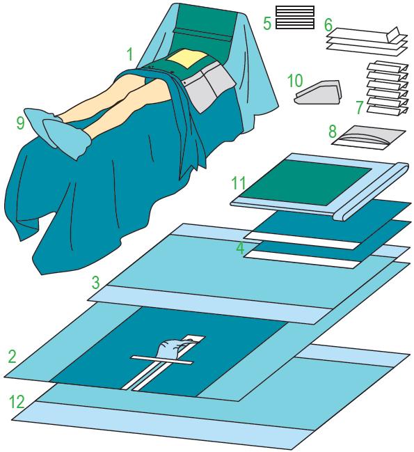Elementy zestawu: serweta chirurgiczna do zabiegów kardiochirurgicznych o wymiarach 175/300x350 cm, posiadająca otwór w okolicach klatki piersiowej o wymiarach 32x40 cm wypełniony folią chirurgiczną, otoczony warstwą wysoko chłonną z możliwością zamocowania drenów 175/300x350 cm - 1 sztuka; serweta pod pacjenta z zabezpieczeniem krocza 200x260 cm - 1 sztuka; serweta na stolik 150x190 cm - 1 sztuka; serweta z taśmą samoprzylepną 75x75 cm - 1 sztuka; taśma samoprzylepna typu RZEP 2,5x30 - 2 sztuki; taśma samoprzylepna 9x49 - 3 sztuki; ręczniki chłonne 18x25 cm - 6 sztuk; kieszeń samoprzylepna jednokomorowa 33x38 cm - 2 sztuka; pokrowce na buty z laminatu 36x28 cm - 2 sztuki; pokrowce na buty z folii 36x28 cm - 2 sztuki; wzmocniona osłona na stolik MAYO 79x145 cm - 1 sztuka; serweta na stolik (owinięcie zestawu) - 150x240 cm - 1 sztuka. Zestaw sterylny. Ilość sztuk w opakowaniu "podajnik"/ilość sztuk w opakowaniu transportowym: 3/6.