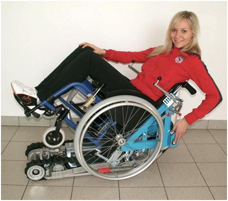 Jest jedynym w swoim rodzaju, mobilnym, pomocniczym urządzeniem podnośnikowym przeznaczonym dla aktywnych kierowców wózków dla osób niepełnosprawnych, które to urządzenie umożliwia jazdę po prostych schodach z podestem we własnym wózku dla osób niepełnosprawnych bez pomocy osób trzecich.