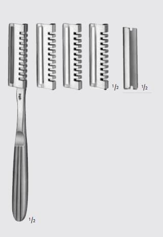 - BA710R - dermatom z 3 rodzajami cięcia - 0,20, 0,25, 0,30mm grubości z 5 ostrzami BA711R (Ostrza zapasowe, niejałowe pakowane po 50 sztuk)
