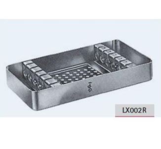 • LX002R - Kaseta do sterylizacji drutów Kirschnera do palców do maks. długości 165 mm, ze skalą pomiarową i przedziałami dla przewodów z 1,0, 1,2, 1,4, 1,6, 1,8 i 2,0 mm średnicy. Wymiary: 170 x 92 x 25 mm