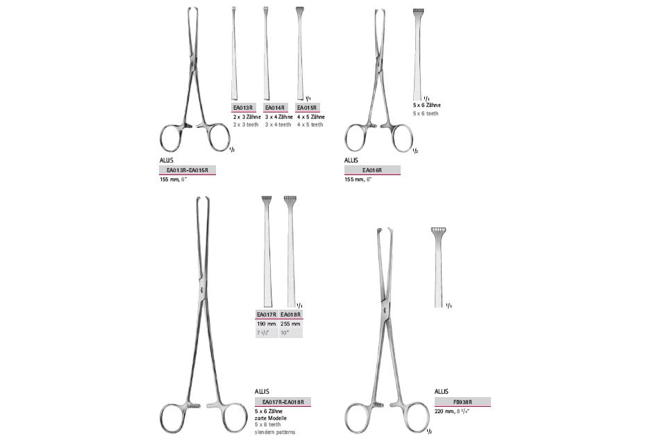 - EA013R-EA015R ALLIS- Długość 155 mm, 2 x 3 zębów (EA013R), 3 x 4 zębów (EA014R), 4 x 5 zębów (EA015R).