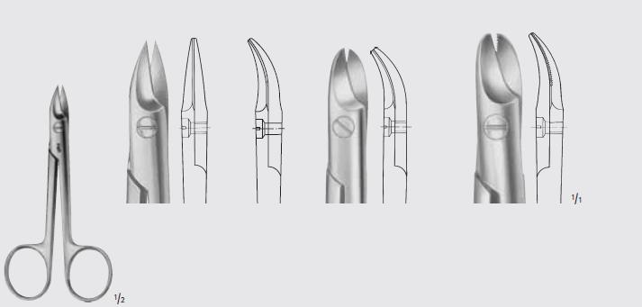 - LX159R - 175 mm, o miękkich drutów do śr. 2,0 mm, do drutu twardego do śr. 1,5 mm, do cięcia drutów w pobliżu kości, specjalnie utwardzone krawędzie tnące