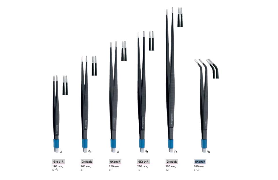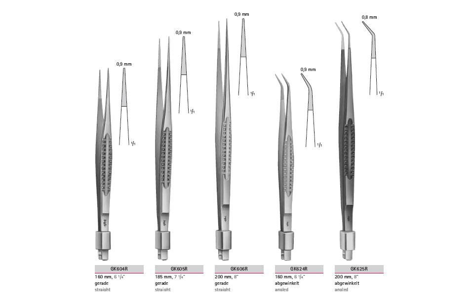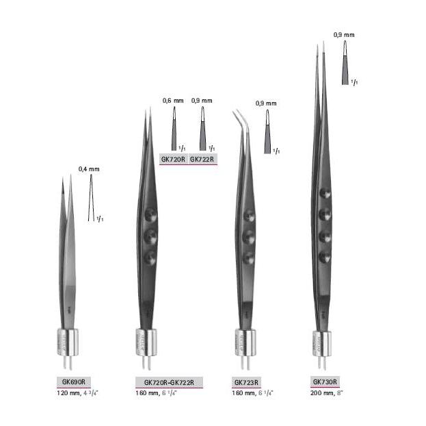 Pęseta o całkowitej długości 160 mm, długość elektrody odpowiednio 0,6 mm oraz 0,9 mm.