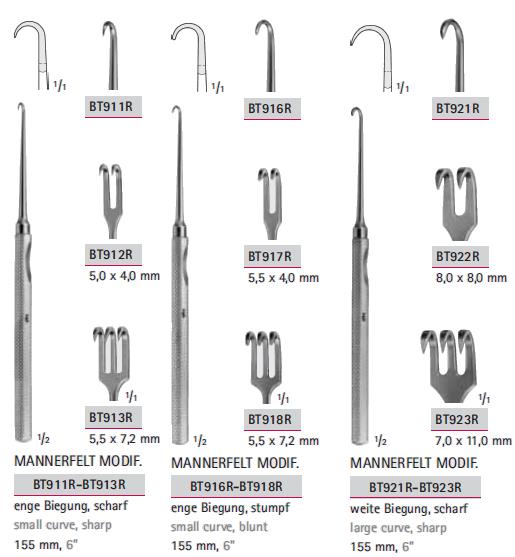 - BT918R - 155mm - 5,5 x 7,2 mm - tępy, lekko zaokrąglony, potrójny hak