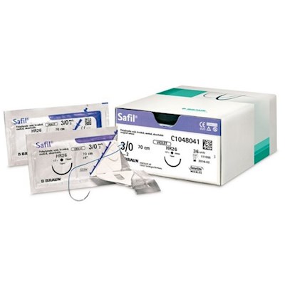 Szwy Safil są wysoce odporne na rozciąganie. Nici posiadają właściwości zapewniające bezpieczeństwo węzła i splotu. Są giętkie i poreczne, dzięki czemu szycie nimi zapewnia lekarzowi wysoki komfort pracy. Powierzchnia szwu jest gładka, co ułatwia szycie i eliminuje efekt cięcia tkanek. Opakowanie 36 szt.