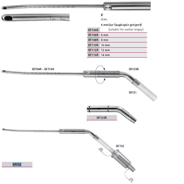 - GF714R - z podziałką i przerywaczem ssania, końcówki robocze są gładko zaokrąglone