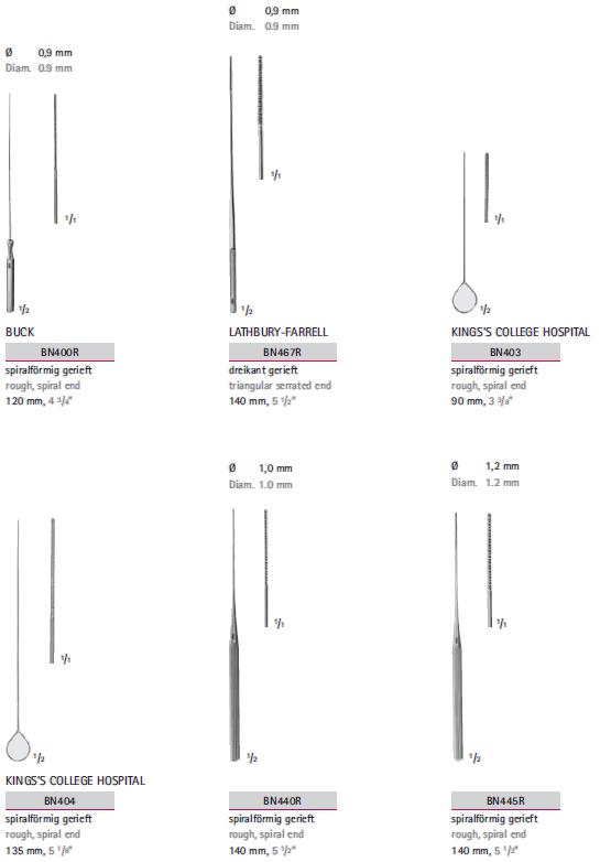 - BN460R - watotrzymacz o okrągłej, ząbkowanej końcówce o długości 140 mm, średnica 1,2 mm;