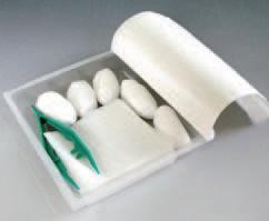 Kompresy gazowe 8 warstwowe 7,5 cm x 7,5 cm – 5 szt.; pęseta plastikowa jednorazowego użytku – 1 szt.; tupfery gazowe kule 20 cm x 20 cm – 5 szt.