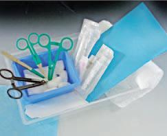 Serweta włókninowa barierowa 2 warstwowa 75 cm x 90 cm – 1 szt.; opatrunek foliowy poliuretanowy zabezp. wkłucie 10 x12 cm – 1 szt.; taca medyczna – 1 szt.; kompresy gazowe 8 warstwowe 5 cm x 5 cm – 2 szt.; kompresy gazowe 8 warstwowe 7,5 cm x 7,5 cm – 6 szt.; tupfery gazowe 30 cm x 30 cm – 5 szt.; pęseta anatomiczna plastikowo-metalowa j.u. – 1 szt.; nożyczki plastikowo-metalowe j.u. do nici – 1 szt.; igłotrzymacz metalowy czarny – 1 szt.; kleszczyki metalowe zielone – 1 szt.; skalpel jednorazowego użytku – 1 szt.; strzykawka jednorazowa 10 ml – 1 szt.; strzykawka jednorazowa 20 ml – 1 szt.; igły jednorazowego użytku – 2 szt.; serweta włókninowa barierowa 75 cm x 90 cm z otworem – 1 szt.; rękawice lateskowe zabiegowe bezpudrowe rozm. M – 2 szt.