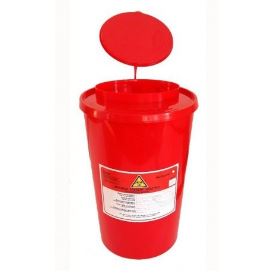 Okrągły pojemnik, otwór wrzutowy owalny z nakładką do zdejmowania igieł. Z pokrywą umożliwiającą szczelne zamknięcie pojemnika.
