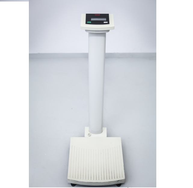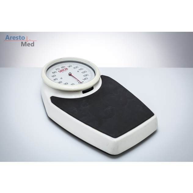 Używana, stan techniczny bardzo dobry, Klasyczna, płaska mechaniczna waga medyczna podłogowa z dużą tarczą w IV klasie dokładności pomiaru do użytkowania w przychodniach, nzozach i szpitalach. Precyzyjna skala, duża tarcza i klasyczny design.