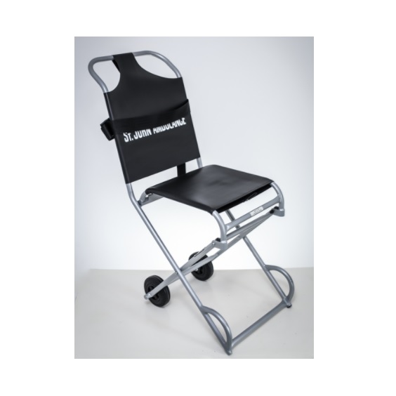 Krzesełko posiada gąsienicowy system płozowy, umożliwiający bezpieczne poruszanie się z pacjentem po schodach,