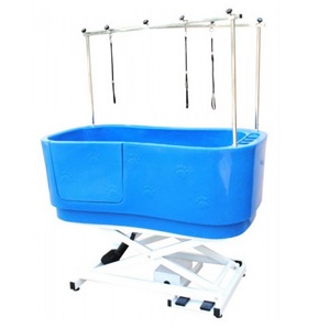 Profesjonalna wanna groomerska Blovi, wykonana z polyethylenu. Wyposażona jest w półkę ułatwiająca kąpiel małych psów. Regulacja wysokości odbywa się za pomocą nożnych pedałów. Wysuwana boczna przegroda wejściowa umożliwia łatwe wprowadzenie psa do wanny. Na obrzeżach wanny znajdują się otwory na butelki z kosmetykami. Idealna do kąpieli każdej rasy, niezastąpiona w każdym profesjonalnym salonie groomerskim.