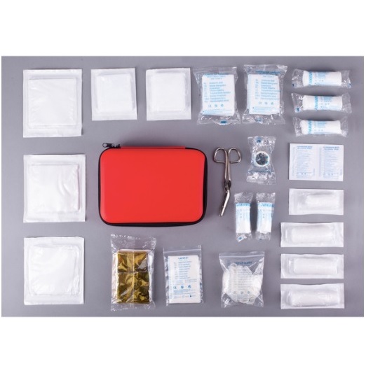 Konieczne wyposażenie każdego samochodu. Zestaw pierwszej pomocy składający się 40 elementów. Zgodny z normą DIN13164. W skład zestawu wchodzą: taśma medyczna 5 m x 2,5 cm, plaster 10 x 6 cm 4 szt , opatrunek na opuszki palców 2 szt, Opatrunek na palec 12 x 2 cm 2 szt, plaster z opatrunkiem 1,9 x 7,2 cm 2 szt, Plaster z opatrunkiem 2,5 x 7,2 cm 4 szt, opatrunek indywidualny 6 x 8 cm, Opatrunek indywidualny 8 x 10 cm 2 szt, Opatrunek indywidualny 10 x 12 cm, chusta opatrunkowa 40 x 60 cm, chusta opatrunkowa 60 x 80 cm, rękawice jednorazowe (4 szt), kompres 6 cm 2 szt, kompres 8 cm 3 szt, Koc ratunkowy 160 x 210 cm, opatrunek na rany 3 szt, Chusta trójkątna 2 szt, Nożyczki, chusteczki nasączono 2 szt, Instrukcja. Zgodny z normą DIN13164. Produkt zgodny z Dyrektywą 93/42/EEC