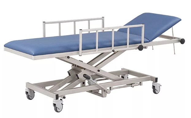 Stoły do transportu pacjentów z hydrauliczną regulacją wysokości, wykonane ze stali nierdzewnej, przystosowane do pracy w środowisku rezonansu magnetycznego (MR lub MRI) do 3 tesli.