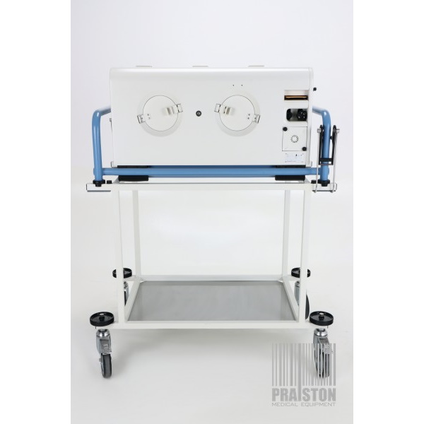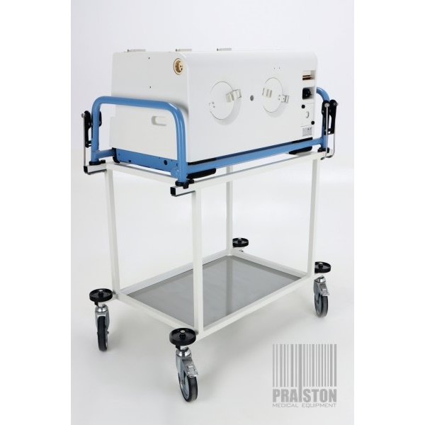 - Inkubator umieszczony na mobilnym wózku, na czterech kołach w tym dwa z hamulcami,