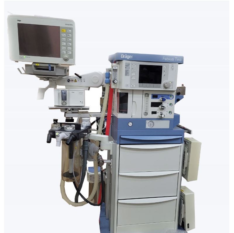 Aparat do znieczulania Drager Fabius Tiro z analizatorem gazów SCIO i kardiomonitorem Infinity Delta.