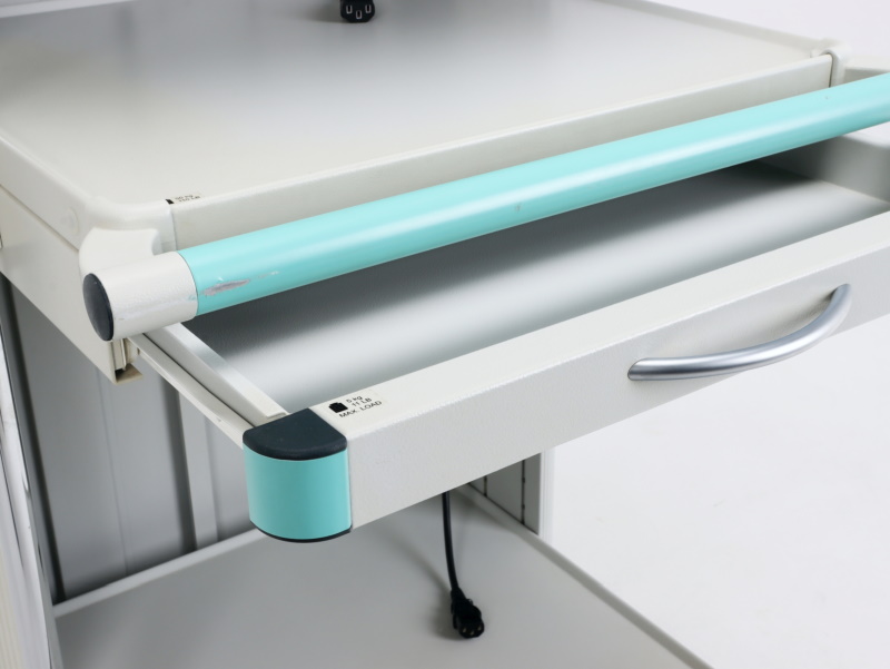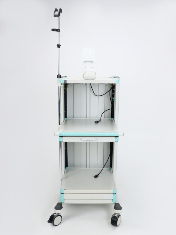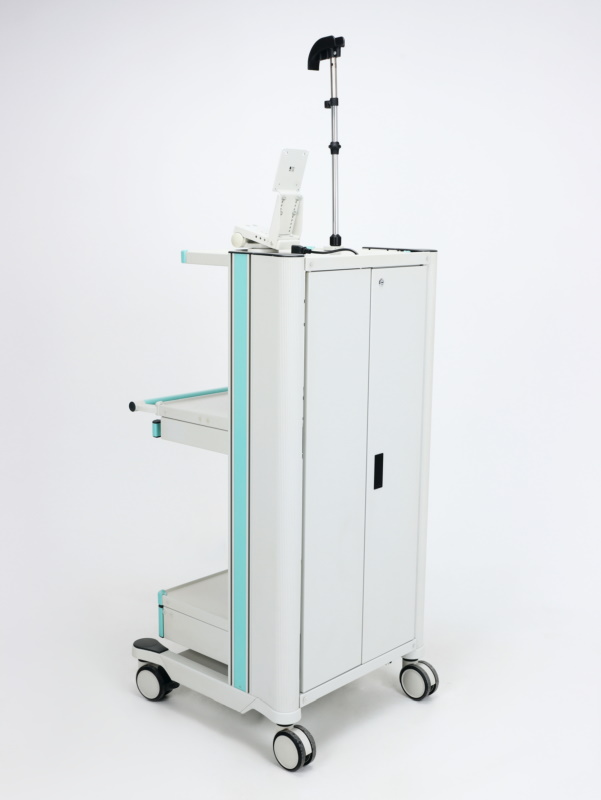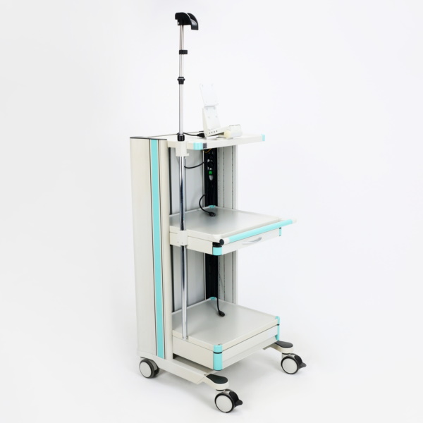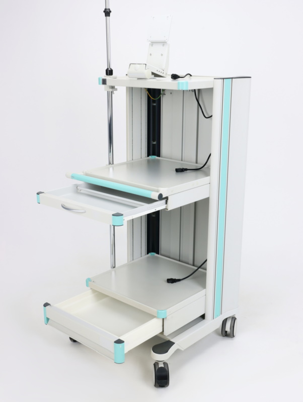 - Endo Elektronik jest stabilnym i wytrzymałym wózkiem przystosowanym do przenoszenia endoskopów i delikatnych sprzętów medycznych,