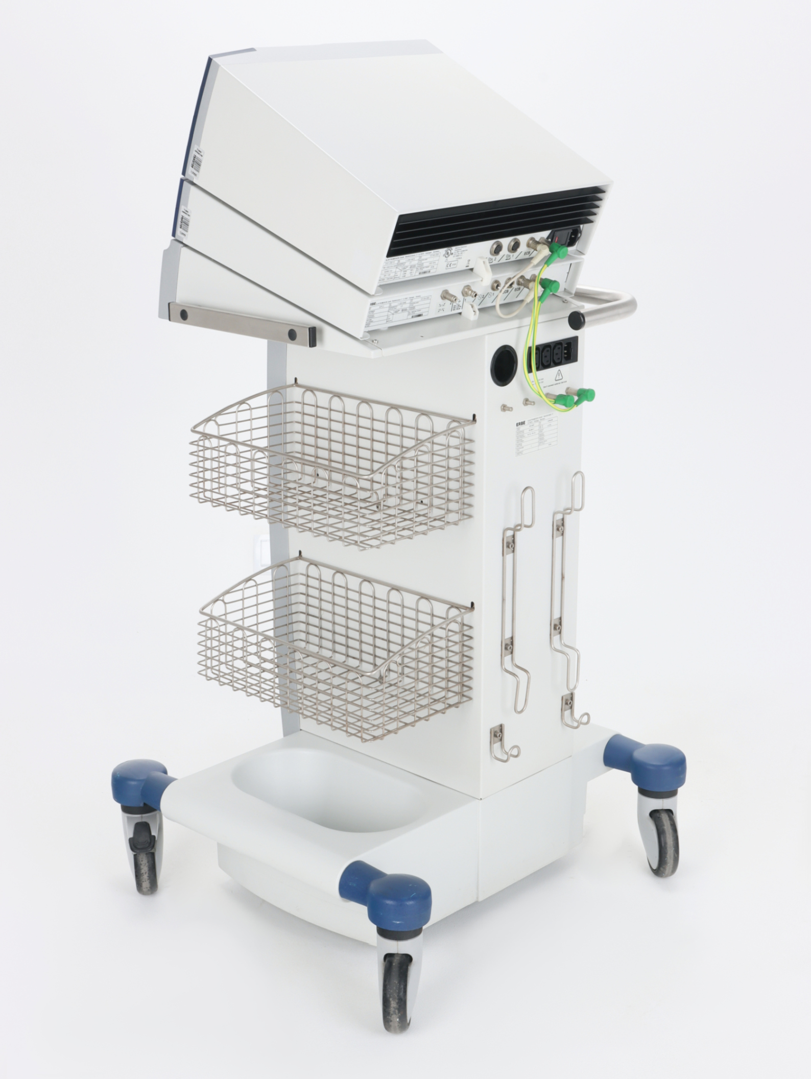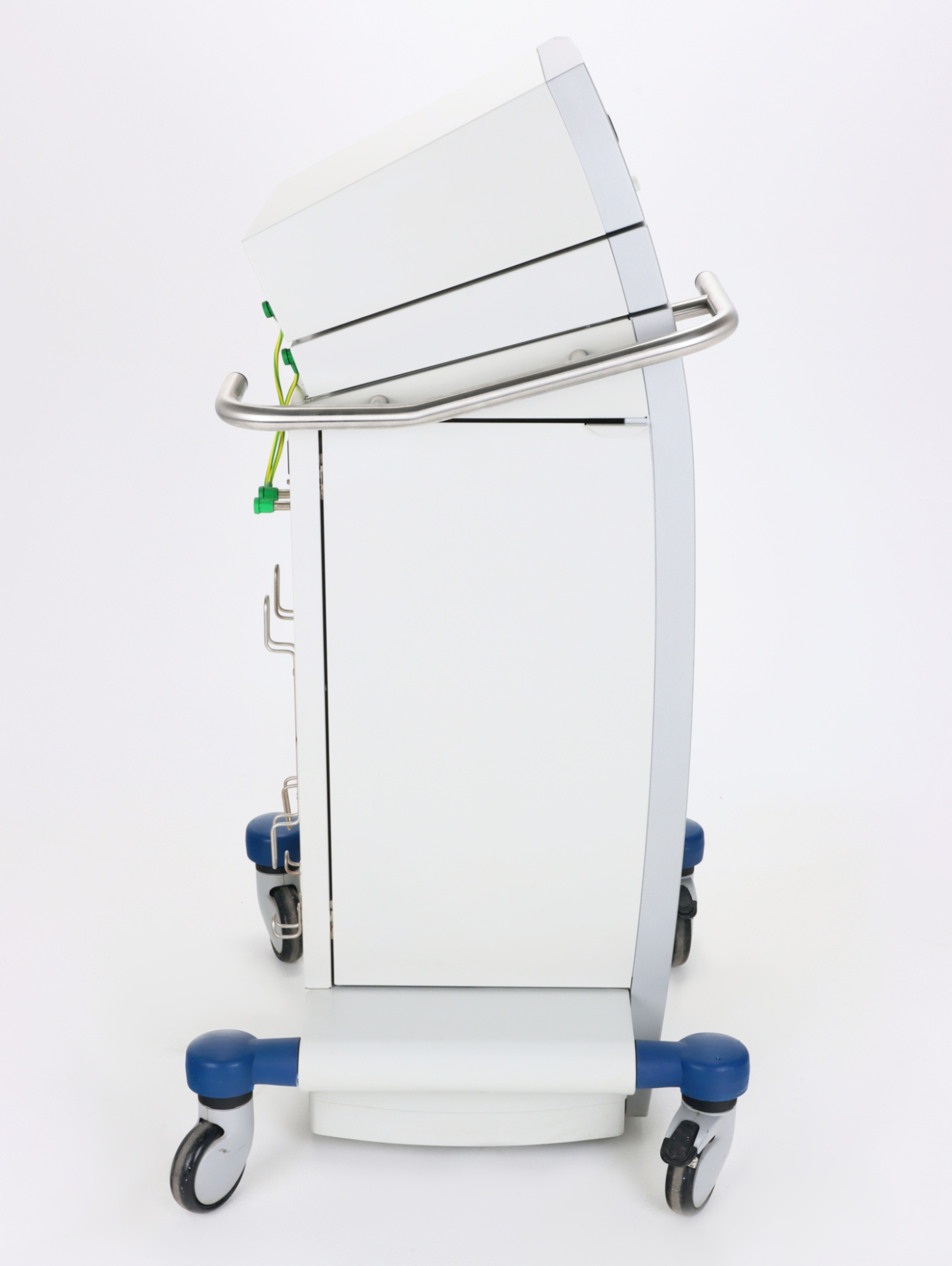 - Posiada szafkę na butlę z argonem, szynę do montażu dodatkowego osprzętu oraz 2 kosze na akcesoria,