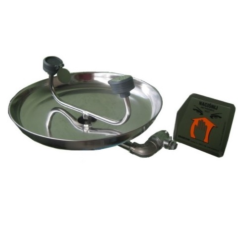 • urządzenie uruchamia się poprzez naciśnięcie klapki, która zmienia swoje położenie z pionowego na poziome i dostarcza dwustronny strumień wody, który kierowany jest do oczu przemywając je pod lekkim ciśnieniem. Po zakończeniu przemywania klapkę należy cofnąć ręką,
