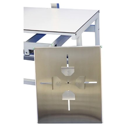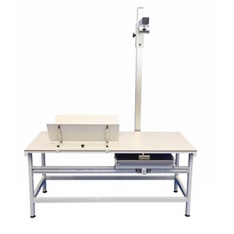 Stabilna i mocna konstrukcja. Profesjonalny stół weterynaryjny do badań RTG z wysięgnikiem i pozycjonerem w zestawie. Blat o wymiarach 1500 x 645 mm wykonany z Kartitu przepuszczający fale RTG. Wysięgnik ze stali nierdzewnej posiada regulację przechyłu oraz 13 ustawień wysokości ramienia. Ramię na aparat RTG można regulować również poprzecznie. Ruch ramienia został zsynchronizowany z samocentrującą szufladą na kasety, która porusza się pod blatem. Zestaw zawiera także pozycjoner z korekcją szerokości, bardzo przydatny przy prześwietlaniu bioder małych zwierząt. Regulowane nóżki stołu, pod blatem zaczepy do ustabilizowania pacjenta.