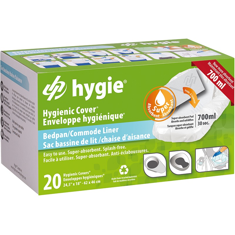 W ciągu 30 sekund super-chłonna podkładka w higienicznym pokrowcu zamieni 700 ml płynów ustrojowych w żel, zmniejszając w ten sposób prawdopodobieństwo rozlania się płynów. Po użyciu należy związać osłonę i wyrzuć w wyznaczonym miejscu.