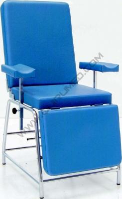 Fotel do pobierania krwi, rozkładany. Waga: 25 kg. Opis produktu: fotel do pobierania krwi z 2 podłokietnikami; struktura stalowa chromowana; regulacja oparcia i podnóżka; podłokietniki składane i obrotowe.