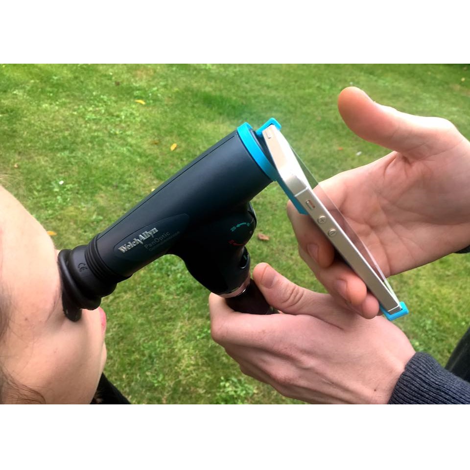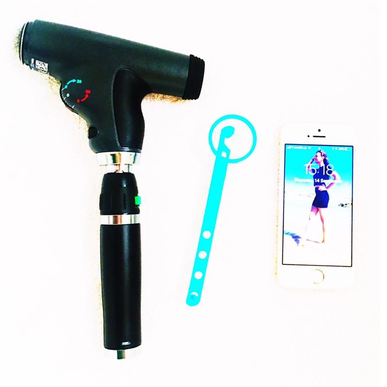 Adapter dzięki szybkiej złączce umożliwia łatwy montaż do oftalmoskopu Panoptic, a przy badaniu dna oka, dzięki iPhone 5/5S/5SE umożliwia robienie zdjęć 8 MBpix.
