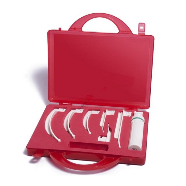 Zestaw zawiera światłowodowe łyżki jednorazowego użytku o rozmiarach. W zestawie znajduje się 6 łyżek laryngoskopowych. Rękojeść bateryjna i twarde etui (walizka). Zestaw nie zawiera baterii.