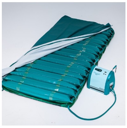Automatyczne ustawienie nacisku dostosowuje się do indywidualnej masy pacjenta. Gładki 2-komorowy system naprzemienny, który zmniejsza ryzyko „zapadania się” pacjenta na rozprężone komory.