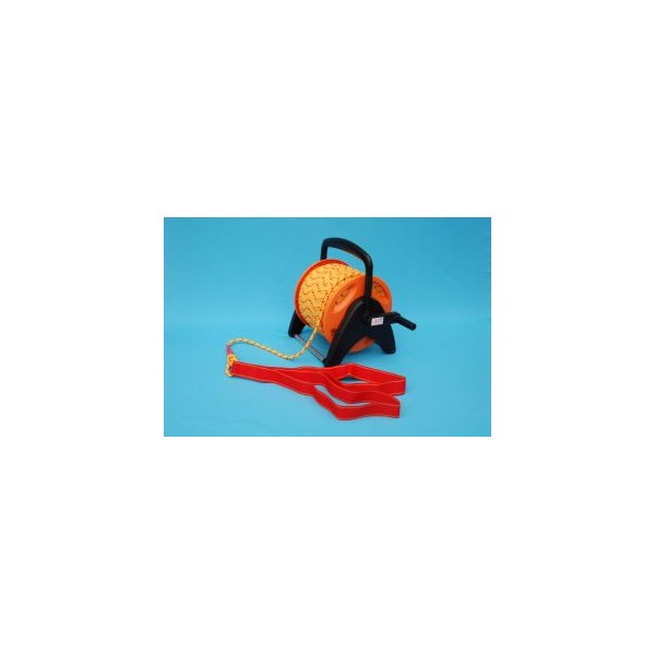 Kołowrót z 100 m nietonącej liny o dużej wytrzymałości zakończonej szelką ratowniczą.