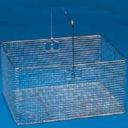 Stal nierdzewna, polerowana. Z drucianym uchwytem pokrytym tworzywem sztucznym, blokującym się w określonej pozycji. Drut 1,2 mm, oczka 8 x 8 mm. Podstawa wzmocniona 2 prętami.