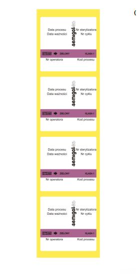 Etykiety dwukronie samoprzylepne ze wskaźniekiem do sterylizacji parą wodną klasy 1 przeznaczone do codziennego oznaczania pakietów.