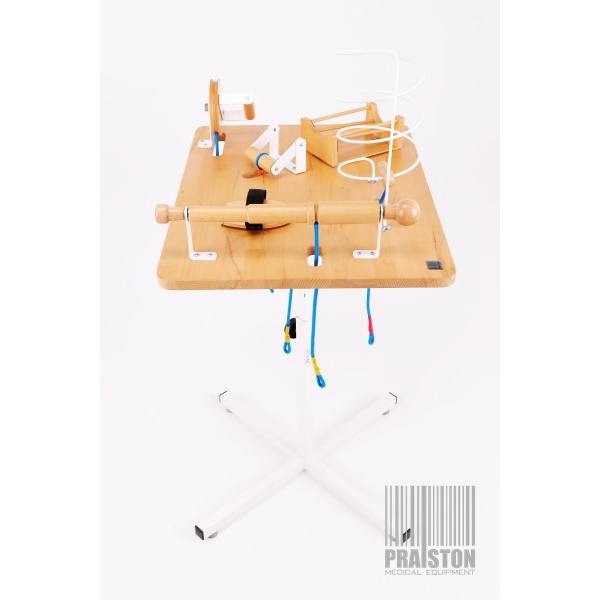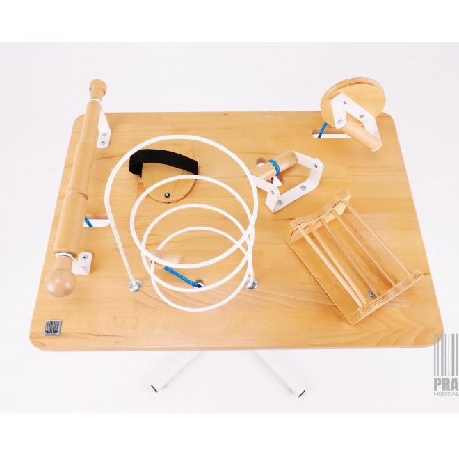 - Tablica do ćwiczeń manualnych KTM przeznaczona jest zarówno dla dorosłych jak i dla dzieci do ćwiczeń czynnych wspomaganych. Tablice te zwiększają przede wszystkim ruchomość stawów oraz siłę mięśni dłoni i palców. Wyposażone są w zestaw przyrządów do ćwiczeń umocowanych na blacie o wymiarach 72 x 52 cm,