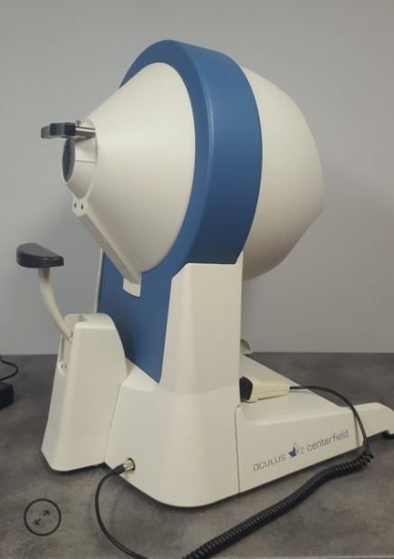 Polomierz projekcyjny do badania statycznego i kinetycznego pola widzenia. Aparat umożliwiający wykonanie badań za pomocą niebieskiego bodźca na żółtym tle (test blue on yellow). Jest w pełni zgodny ze standardem Goldmanna i spełnia wymagania międzynarodowej normy perymetrycznej ISO-12866.