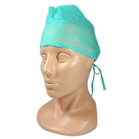 Jednorazowy czepek zabiegowy typu furażerka wiązany na troki.