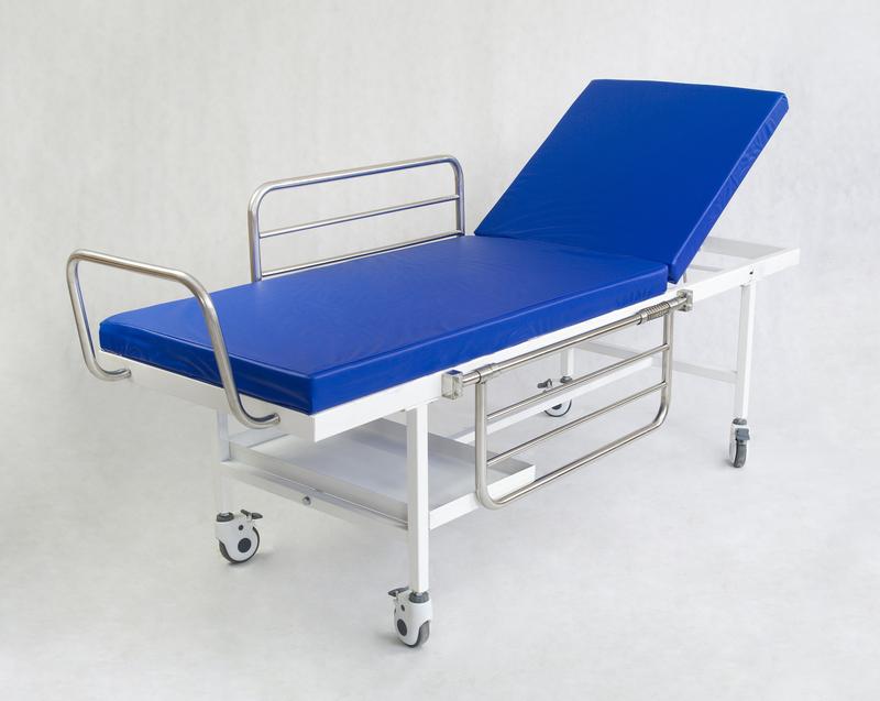 Wózek Mobil przeznaczony jest to transportu chorych na wszystkich oddziąłach szpitalnych. Wyróżnia się wytrzymałą konstrukcja i prostotą. Jest wykonany z profili stalowych pokrytych farba proszkową z dodatkiem żywicy. Wzmacnia to wytrzymałość powłoki lakiernicznej, dzieki czemu jest odporna na obicia i odpryski. Mobil posiada stałą wysokość. Stalowe barierki zabezpieczające pacjenta podczas transporu składają się poniżej leża, co ułatwia przenoszenie pacjenta. Uchwyt pozwala na wygodne prowadzeniw wózka. Półka z koszykiem na przedmioty oraz mocowanie na kroplówkę w standardzie. Produkt spełnia wymagania Dyrektywy Rady 93/42/EEC dotyczącej wyrobów medycznych oraz Ustawy o wyrobach medycznych.