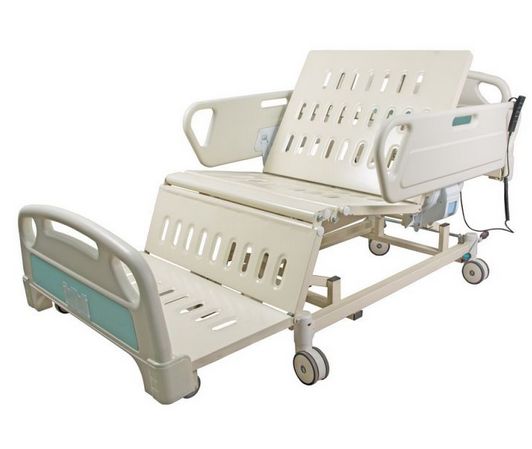 Łóźko szpitalne z regulacją elektryczną do pozycji siedzącej. Ten model łóżka znajduje zastosowanie na oddziałach kardiologicznych, neurologicznych oraz rehabilitacji, dzięki uniwersalnej stylistyce pasuje niemal do każdego wnętrza.