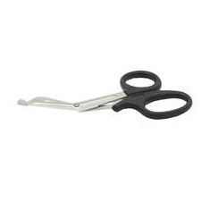 Nożyczki ratownicze. Zaokrąglone końcówki zabezpieczają przed przypadkowym zranieniem. Stopka pozwala na łatwiejsze rozcinanie ubrań poszkodowanego.