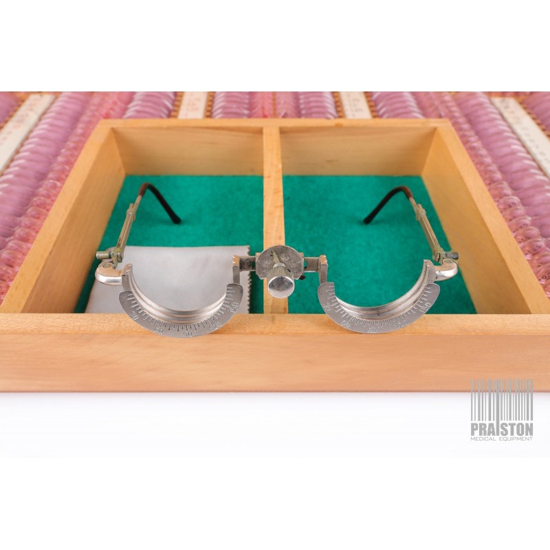 - Kaseta okulistyczna jest zestawem soczewek o różnej mocy, które wraz z oprawą próbną służą do badania wzroku oraz doboru odpowiednich okularów,