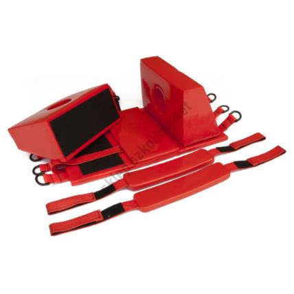Stabilizator klockowy głowy to uniwersalny system unieruchomienia głowy z wykorzystaniem deski ortopedycznej. Składa się z podkładki, dwóch klocków do stabilizacji bocznej z otworami na uszy oraz dwóch pasków mocujących. Wykorzystany materiał jest wodoodporny i łatwo zmywalny co znacznie ułatwia utrzymanie zestawu w czystości. Produkt przepuszcza promienie X.