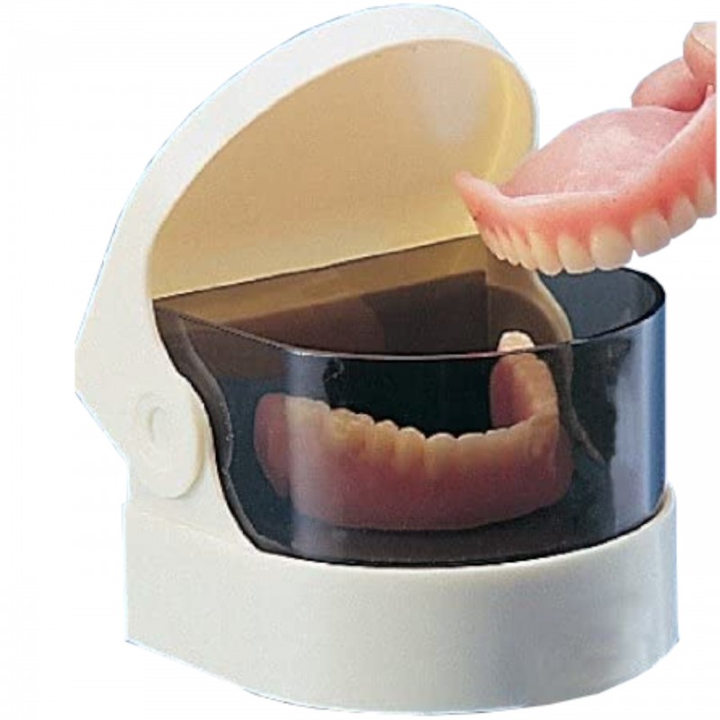 Wystarczy umieścić protezę w zbiorniczku, dodać wody i dowolny środek przeznaczony do czyszczenia protez zębowych i uruchomić urządzenie.