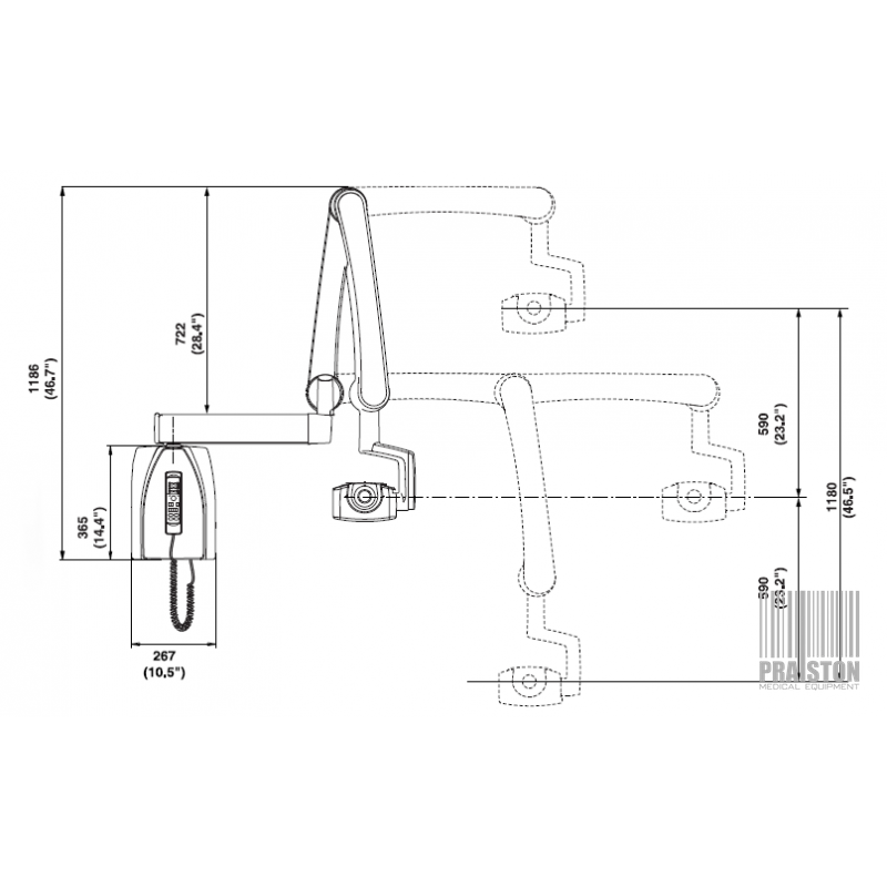 Wyważone ramię aparatu zapewnia płynne, dokładne ruchy, powodujące precyzyjne i łatwe ustawienie głowicy rentgenowskiej,