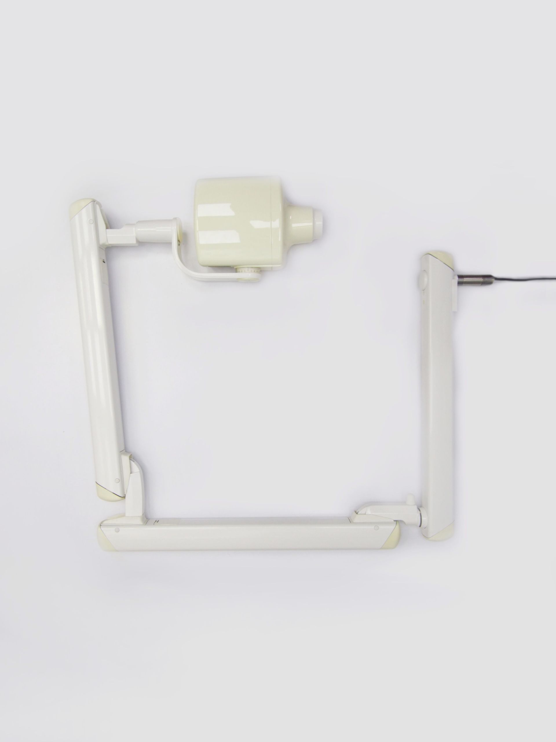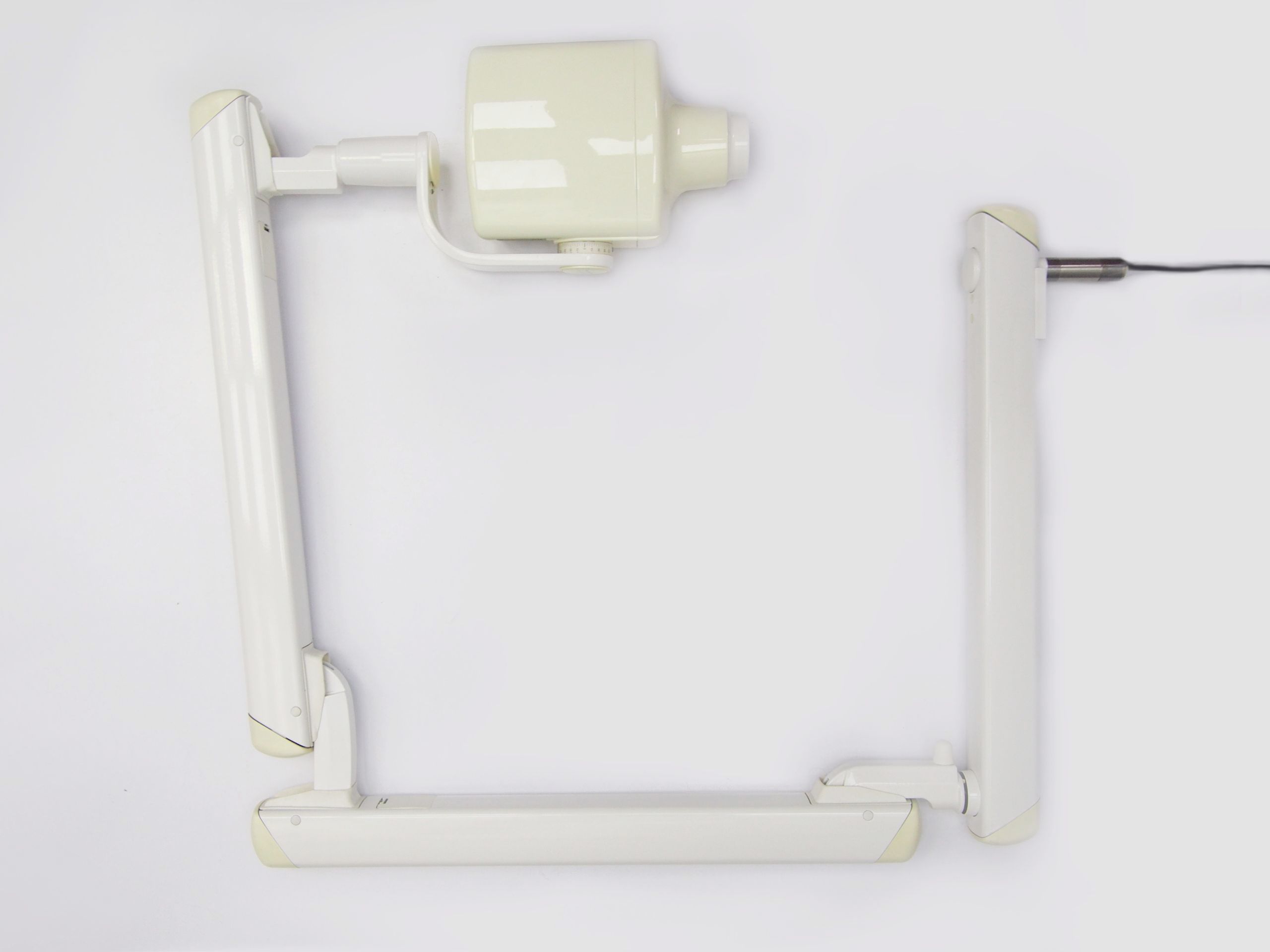 - Głowica obracana w wielu płaszczyznach, umieszczona na 3 przegubowym ramieniu, długość pojedynczego ramienia: 67 cm,