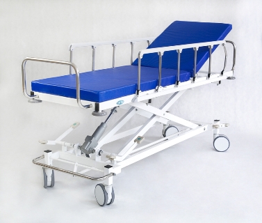 Wózek PROMA przeznaczony jest to transportu chorych na wszystkich oddziąłach szpitalnych. Wyróżnia się wytrzymałą konstrukcja. Jest wykonany z profili stalowych pokrytych farba proszkową z dodatkiem żywicy. Wzmacnia to wytrzymałość powłoki lakiernicznej, dzieki czemu jest odporna na obicia i odpryski. PROMA posiada stalowe barierki zabezpieczające pacjenta podczas transporu składają się poniżej leża, co ułatwia przenoszenie pacjenta. Uchwyt pozwala na wygodne prowadzeniw wózka. Hamulec centralny pozwala na jednoczesne zablokowanie wszystkich kół, co gwaratntuje szybkie ustawienei wózka w stabilnej i nieruchomej pozycji. Krążki odbojowe zapobiegaja uszkodzeniu ścian. Mocowanie na kroplówkę w standardzie. Produkt spełnia wymagania Dyrektywy Rady 93/42/EEC dotyczącej wyrobów medycznych oraz Ustawy o wyrobach medycznych.